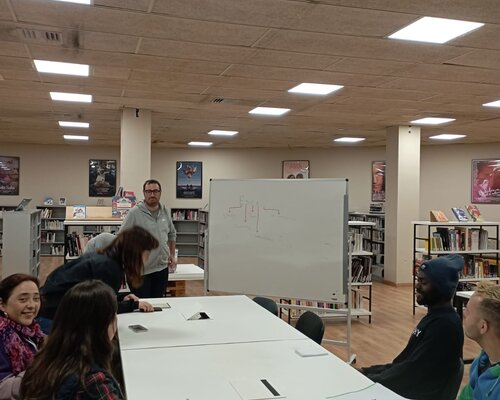 El Luis i el Jordi ens van explicar com funciona l'escola, quins estudis s'hi poden fer i ens van ensenyar els espais on fan les pràctiques. Va ser molt interessant conèixer els secrets del món del cinema.