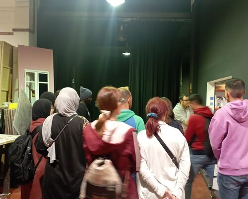 Dijous 10 de novembre al vespre els alumnes de català del grup Elemental 2 de Terrassa van visitar l'ESCAC, l'Escola Superior de Cinema i Audiovisuals de Catalunya, amb qui compartim edifici, Vapor Universitari.