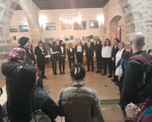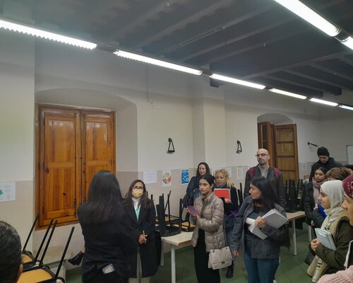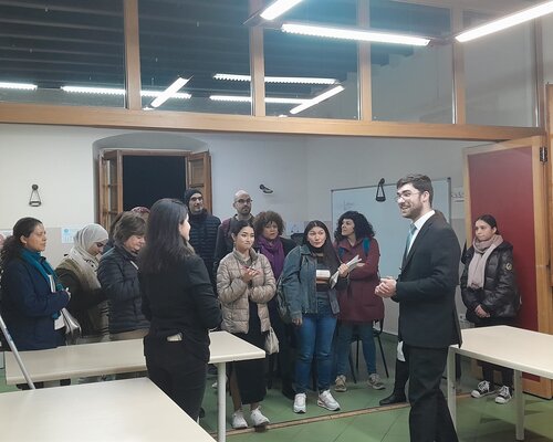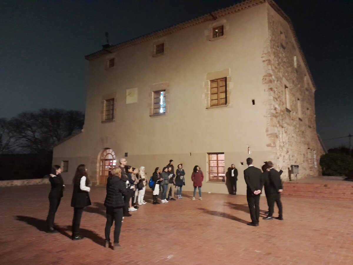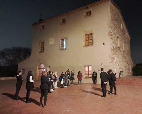 Vam ser rebuts per un grup d' estudiants de Grau Superior de Turisme i la seva professora, que van fer-nos un recorregut per totes las instal·lacions començant per l'exterior del recinte i acabant a l'interior de l'edifici, a la vegada que explicaven un resum de la seva història, curiositats i la seva oferta actual, tant gastronòmica com de cursos formatius.
