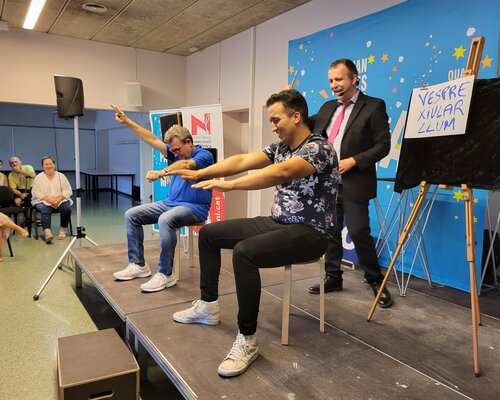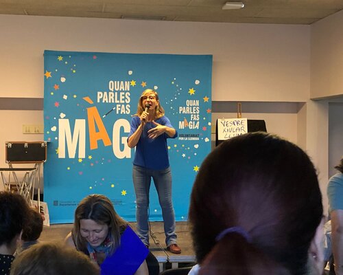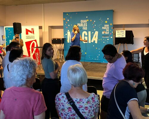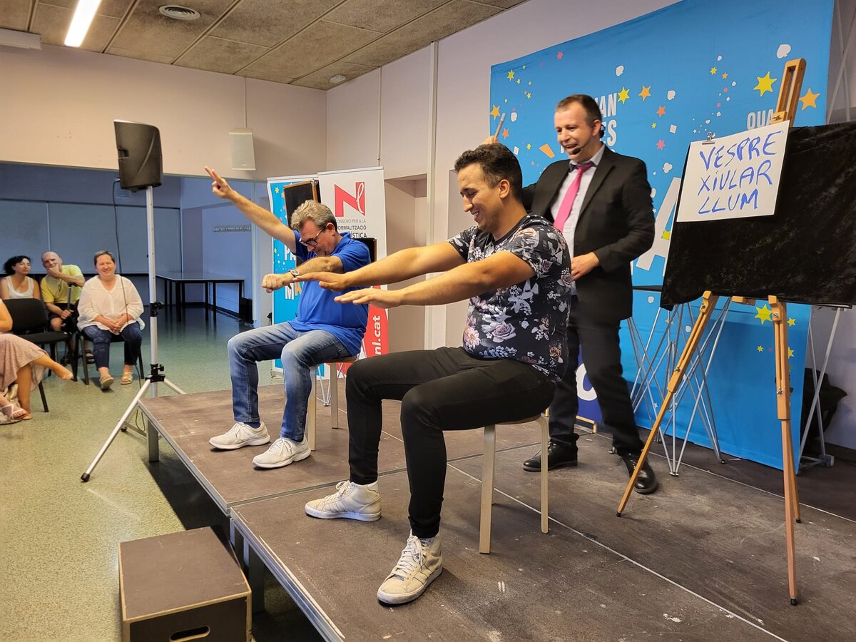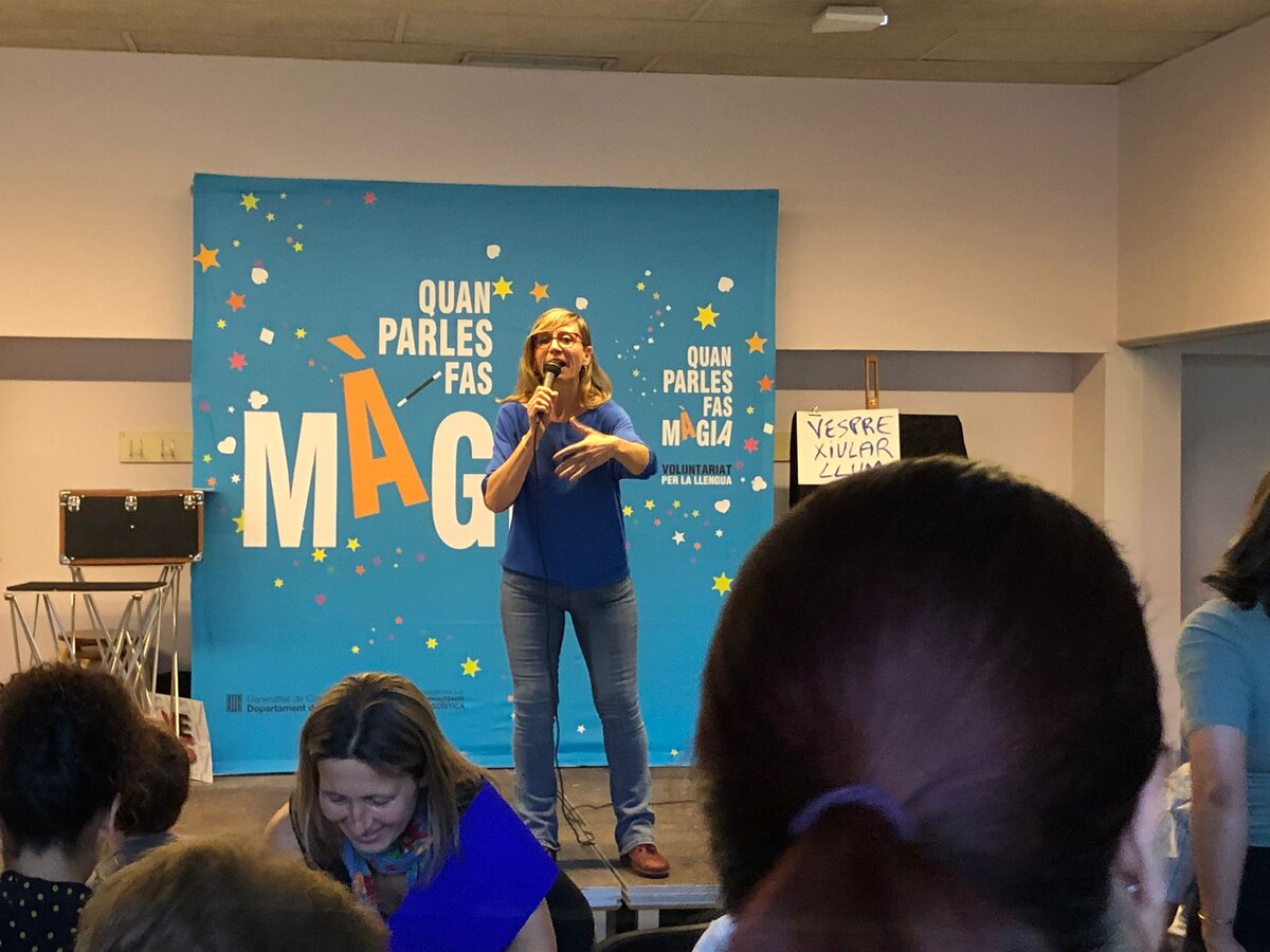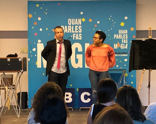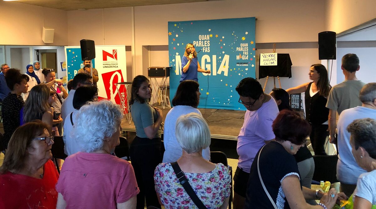 Tot seguit, el mag Eduard Juanola, protagonista de la campanya de promoció del Voluntariat per la llengua a Catalunya "Quan parles fas màgia", transportà el públic al món dels jocs lingüístics i de les connexions màgiques entre voluntaris i aprenents. Alguns trucs es van desenvolupar amb la participació d'alumnes i de parelles lingüístiques. Va ser una actuació molt celebrada pel públic.