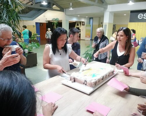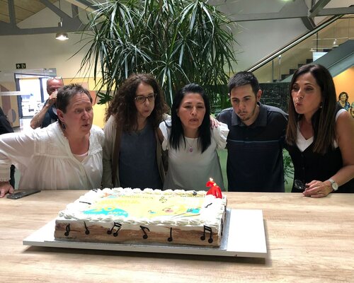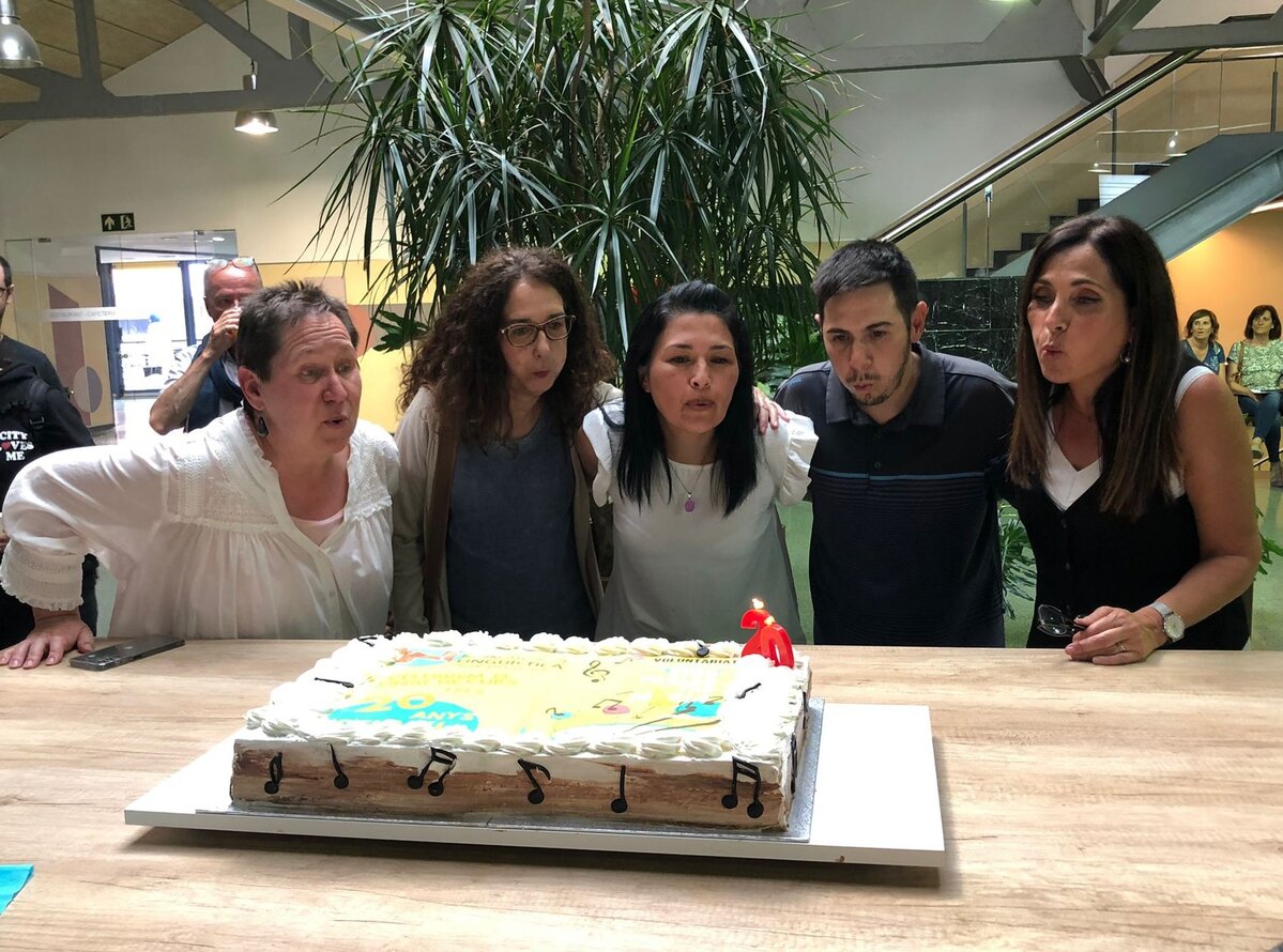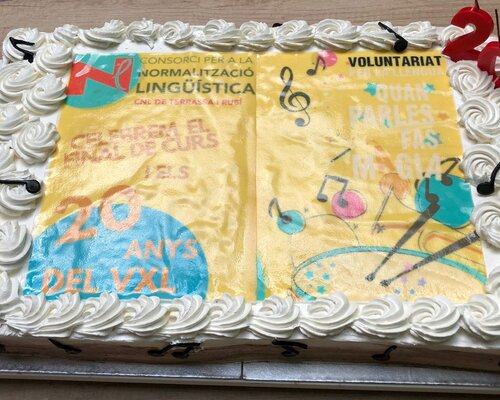 La celebració s'acabà bufant les espelmes dels 20 anys i menjant el pastís amb què l'alumna i aprenenta del VxL, Gisela Achaba, va obsequiar a tothom.