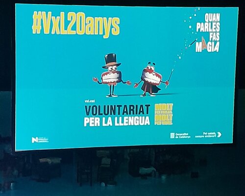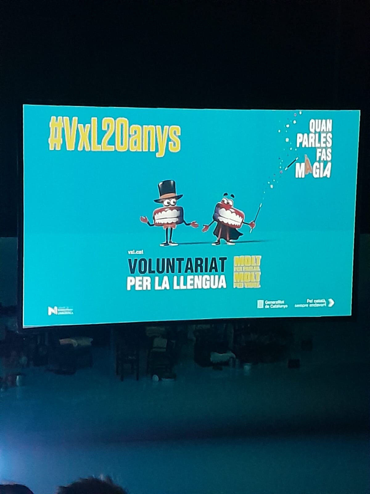 El programa de parelles lingüístiques Voluntariat per la llengua (VxL) ha celebrat el seu 20è aniversari, en un acte que ha reunit més de 800 persones, majoritàriament participants de les parelles lingüístiques de tot Catalunya, així com col·laboradors del programa. La consellera de Cultura, Natàlia Garriga, ha participat en la celebració, que va tenir lloc ahir al vespre al Teatre Nacional de Catalunya (TNC).