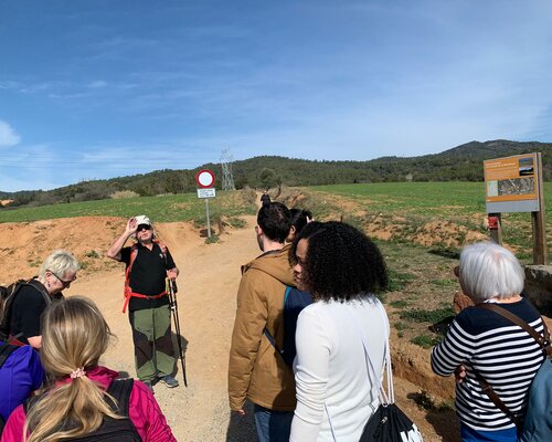 Durant l’itinerari alguns participants explicaven a la resta del grup informacions sobre els punts on anaven fent parades: el llac Petit, la font de la Misèria, la font de la Bardissa, Can Bogunyà, Can Carbonell i el Parc Audiovisual de Catalunya.