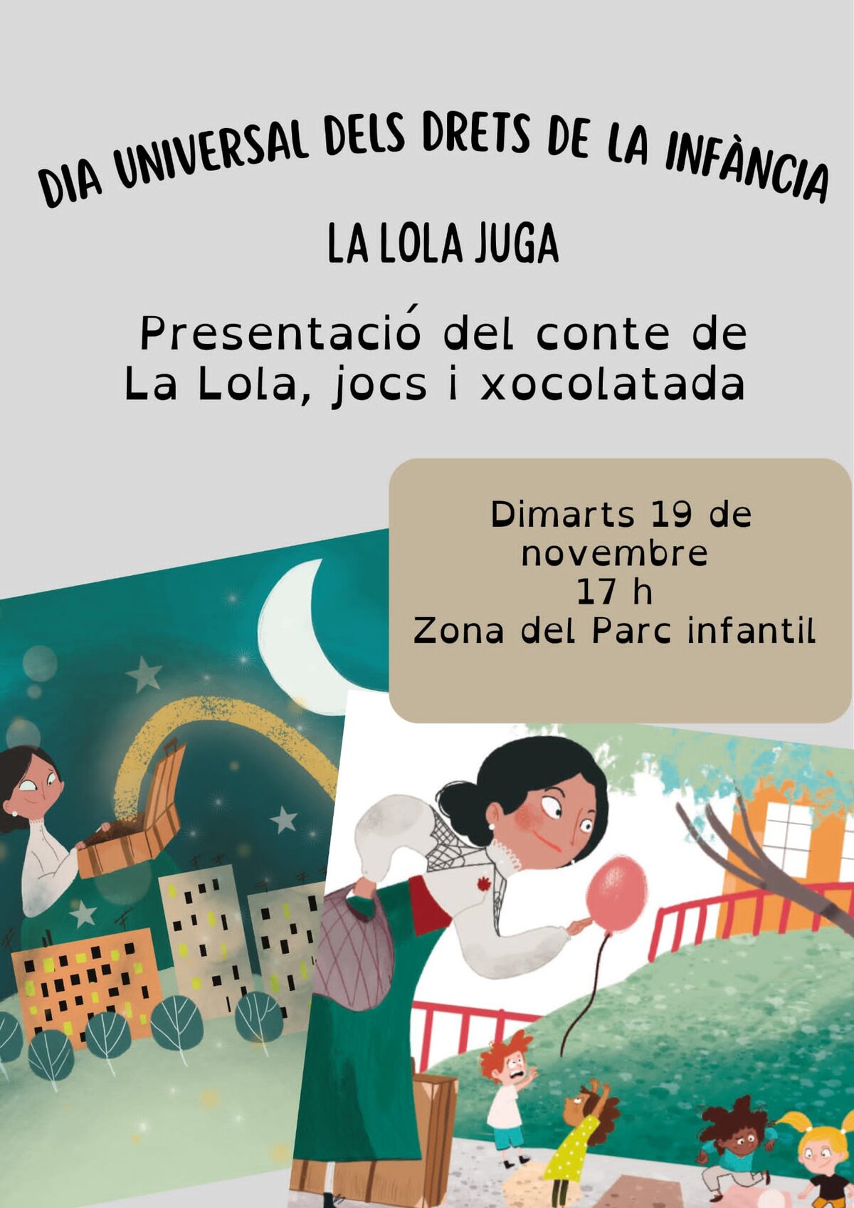 L'Ajuntament va aprofitar el Dia universal dels Drets de la Infància per presentar el conte i muntar diversos jocs de taula per als infants del barri. També hi va haver xocolata, coca i un conte per a totes les persones que el van demanar.