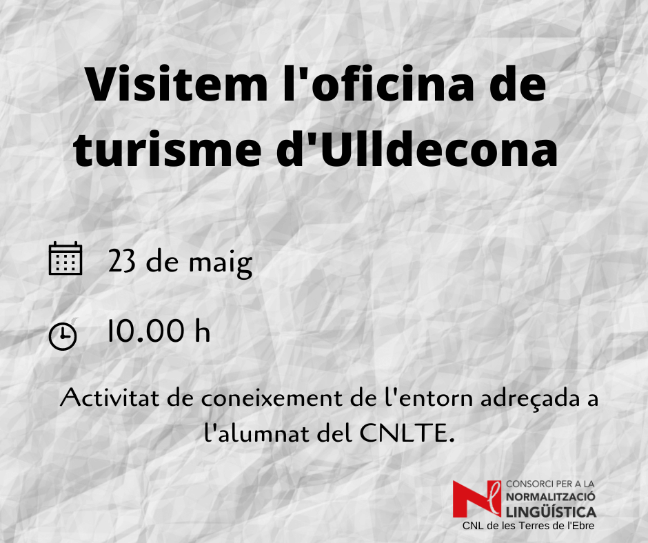 Dimarts 23 de maig, es realitza una sortida cultural a l’oficina de turisme d’Ulldecona. Es tracta d'una activitat de coneixement de l’entorn adreçada a l'alumnat del CNLTE.