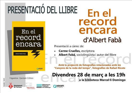 El dia 28 de març, a la Biblioteca Marcel·lí Domingo de Tortosa, a les 19.00 h, Albert Fabà presenta el seu segon dietari.