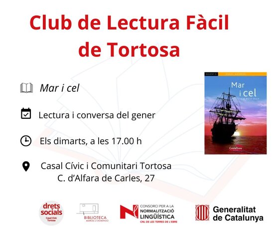 El dimarts 27 de gener, a les 17.00 h, al Casal Cívic i Comunitari Tortosa té lloc una edició del Club de Lectura Fàcil.
