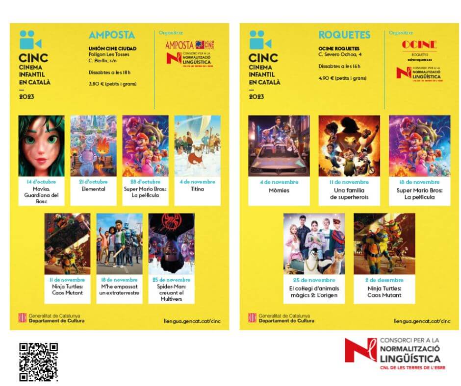 A partir del 4 de novembre i fins al 2 de desembre es projectaran durant quatre dissabtes consecutius pel·lícules infantils, doblades al català, a les sales dels cinemes de Roquetes. A les sales d’Amposta, se’n projectaran del 14 d’octubre al 25 de novembre.