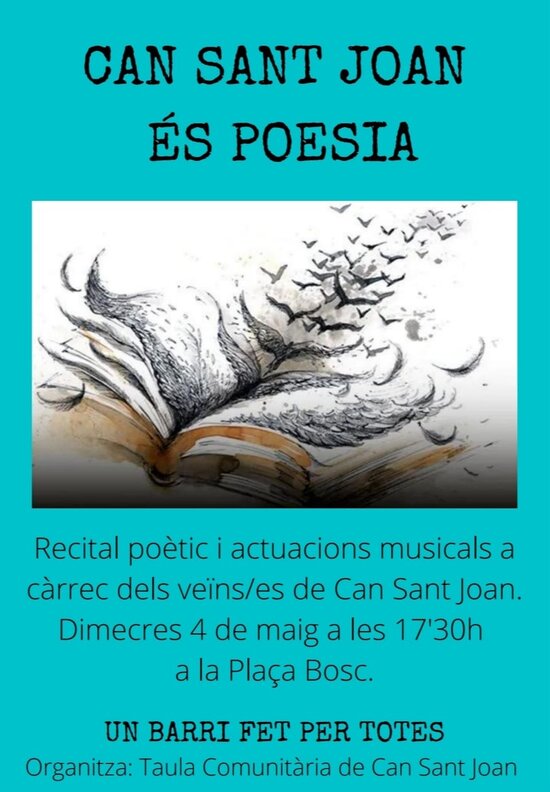 El dimecres 4 de maig a les 18 h, alumnes de català bàsic de Montcada participaran en la lectura poètica multilingüe Can Sant Joan és poesia que tindrà lloc a la plaça del Bosc del barri de Can Sant Joan.