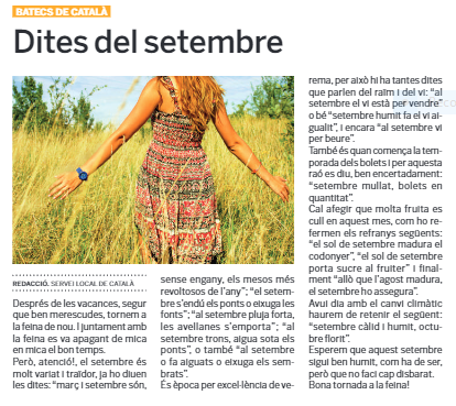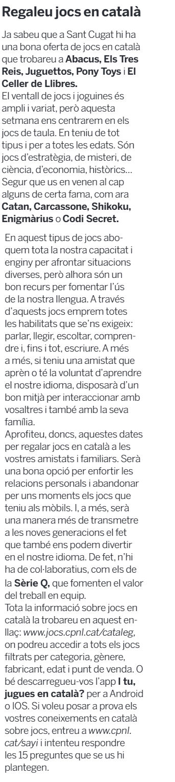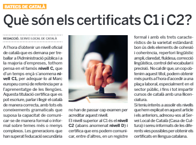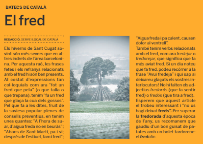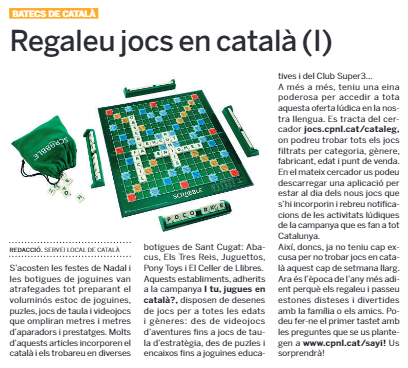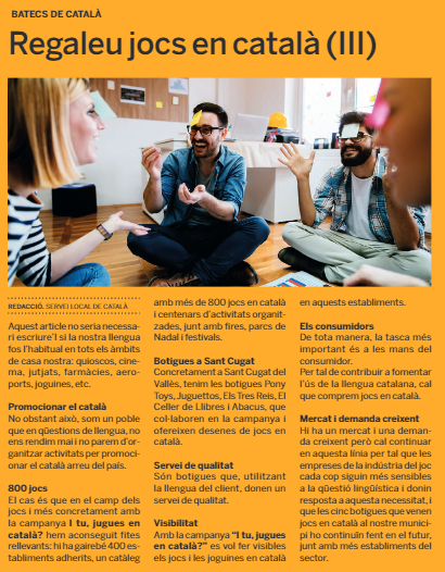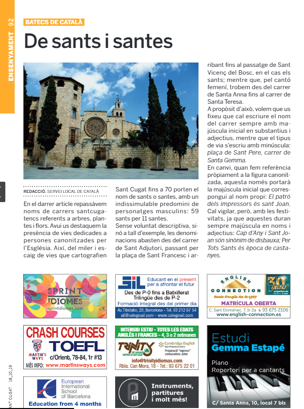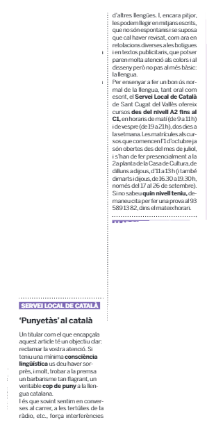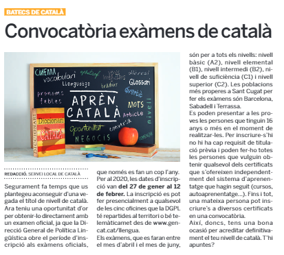 El Servei Local de Català de Sant Cugat del Vallès col·labora amb el Tot Sant Cugat amb una publicació setmanal sobre llengua.