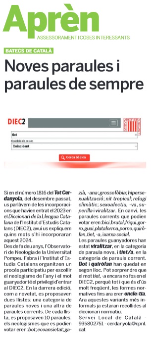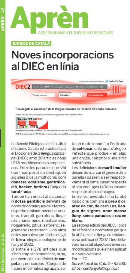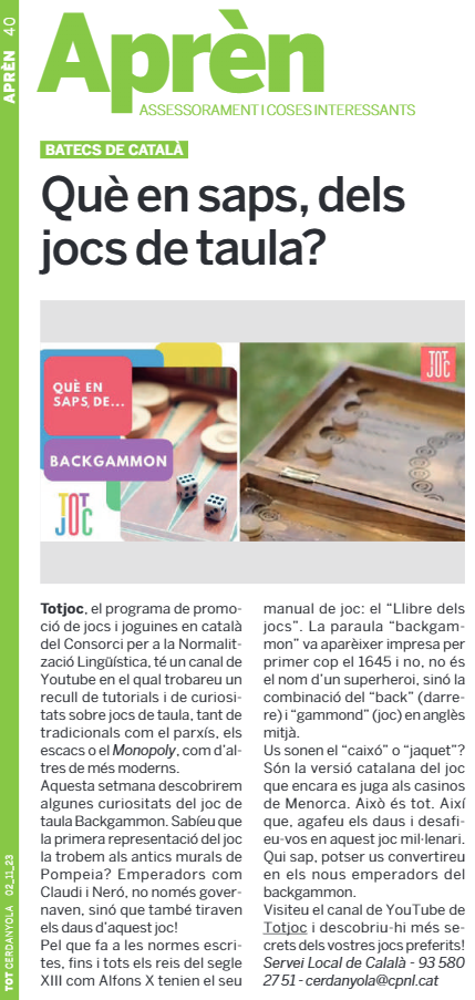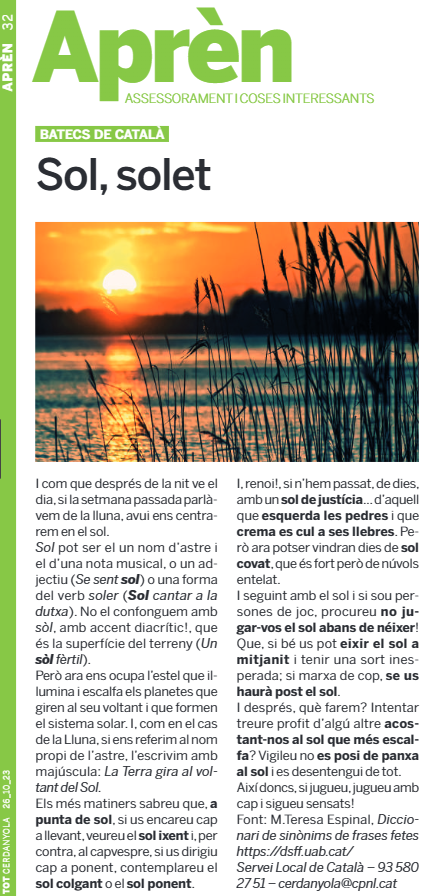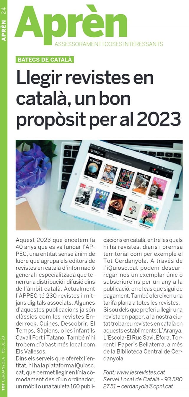 El Servei Local de Català de Cerdanyola del Vallès col·labora des de fa temps amb la revista Tot Cerdanyola amb articles sobre informacions lingüístiques diverses.