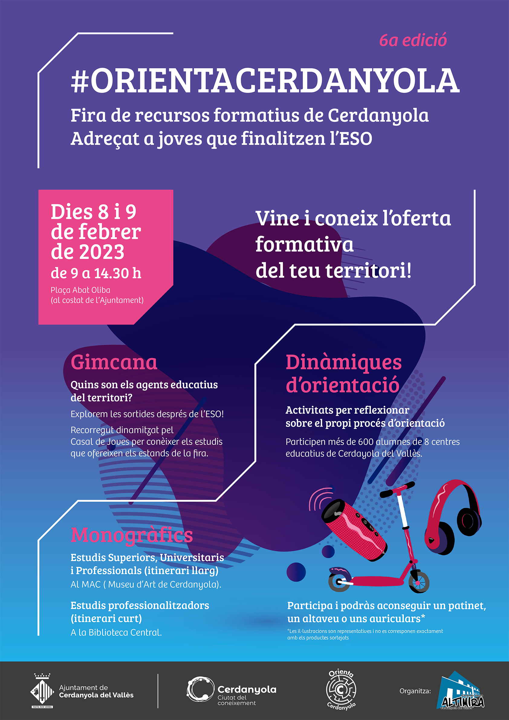 Aquesta iniciativa està organitzada per la Regidoria de Joventut amb el suport de la Regidoria d’Educació de l’Ajuntament de Cerdanyola.