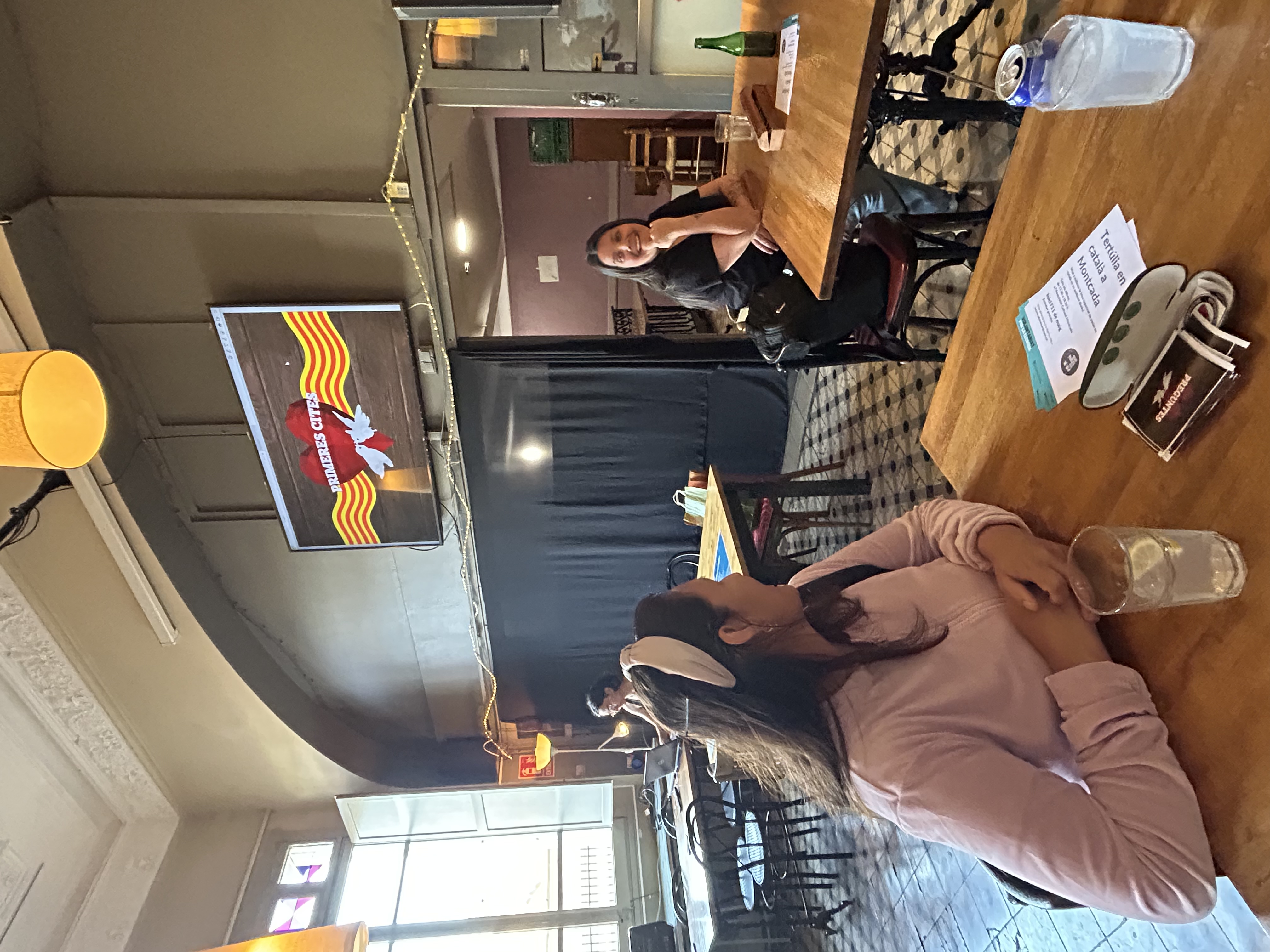 La tarda del 29 d’abril l’entitat Entrevies va organitzar l'activitat Primeres cites en català al Cafè Colón de Montcada.