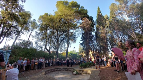 Un centenar de persones va participar a la ruta poètica pels Jardins de Ca n'Ortadó de Cerdanyola que va tenir lloc el 20 de maig. En una atmosfera poètica molt especial, es van unir lectures, músia i art: alumnes dels cursos de català, poetes i membres del col·lectiu Vespres literaris van recitar alguns dels 130 poemes escrits per dones i extrets de l'antalogia Dones, arbre i poesia (Voliana Edicions, 2021). Les lectures van estar acompanyades per la música de l’Agrupació musical de Cerdanyola i l’art de les alumnes de l’Escola d’Arts Plàstiques de l’Ateneu, que durant la vetllada van dibuixar i pintar els arbres i les plantes dels jardins.