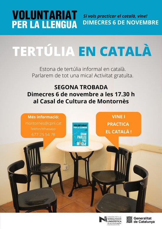 Segona trobada de tertúlia en català, una proposta de pràctica oral en català que se suma al Voluntariat per la llengua.