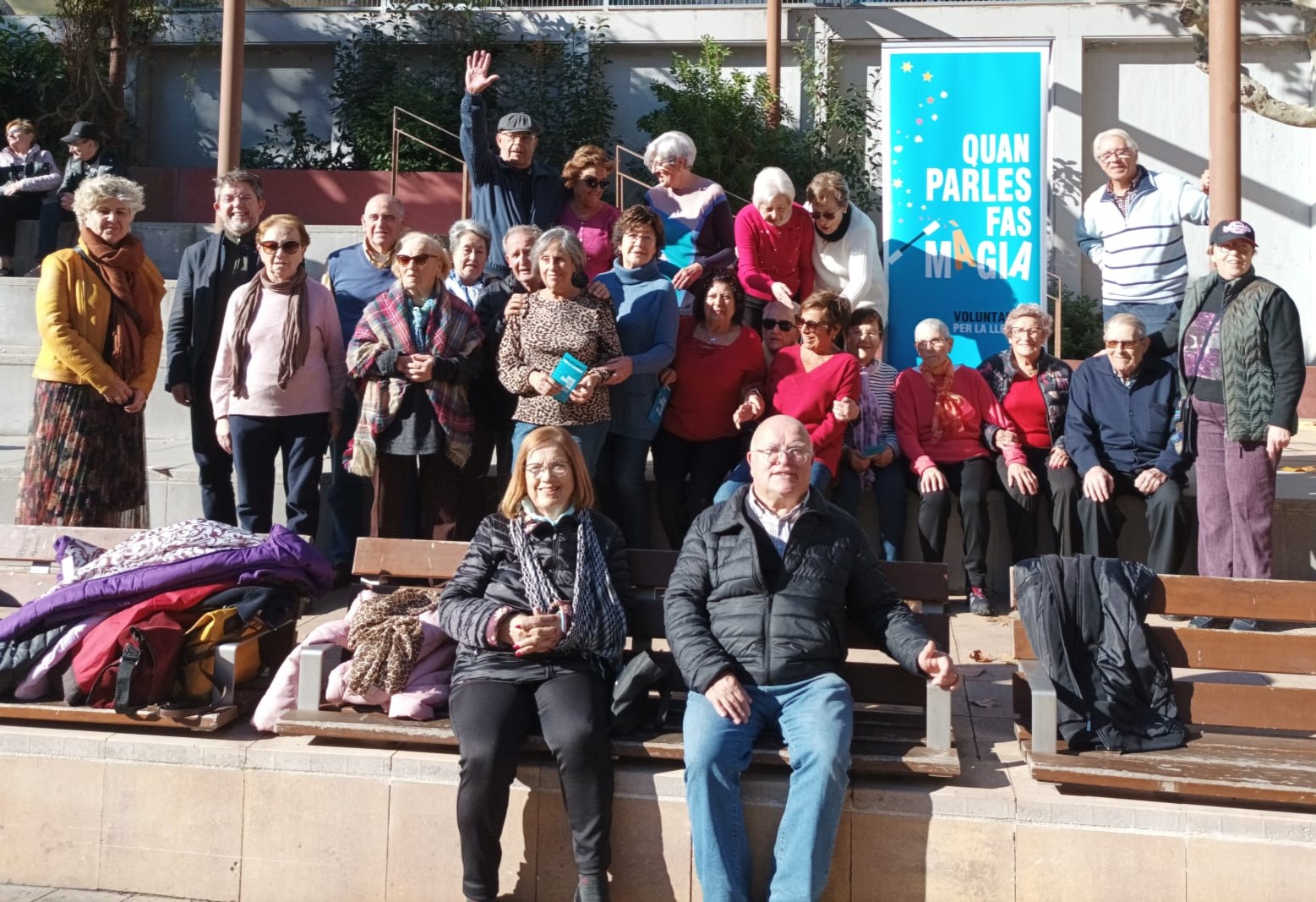 A la mitja part, alumnes, voluntaris i molts dels balladors es van fer una fotografia al costat del tòtem del Voluntariat per la llengua amb el seu lema "Quan parles fas màgia" i es van repartir tríptics informatius entre els assistents per animar-los a participar-hi. Entre els balladors i balladores més estusiastes de la sardana hi ha un grup que també coordina Encarna Gascón i que es van interessar molt pel Voluntariat. Qui sap si aquesta ballada “fa màgia” i de la trobada sardanista d'aquest any també en surt alguna parella lingüística.