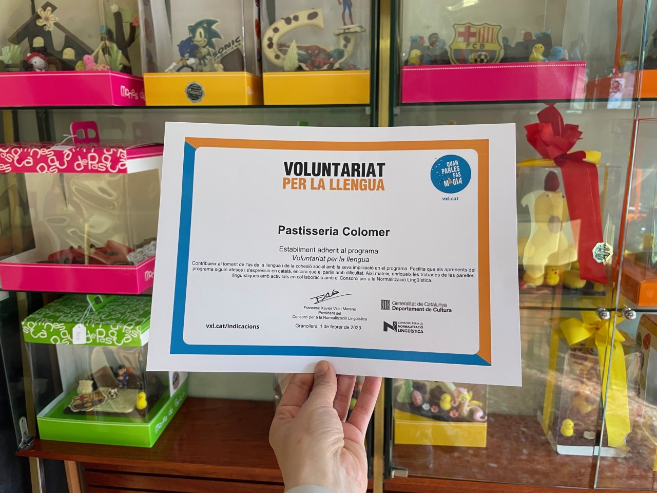 La Pastisseria Colomer i la botiga Basket Store renoven l’adhesió al Voluntariat per la llengua