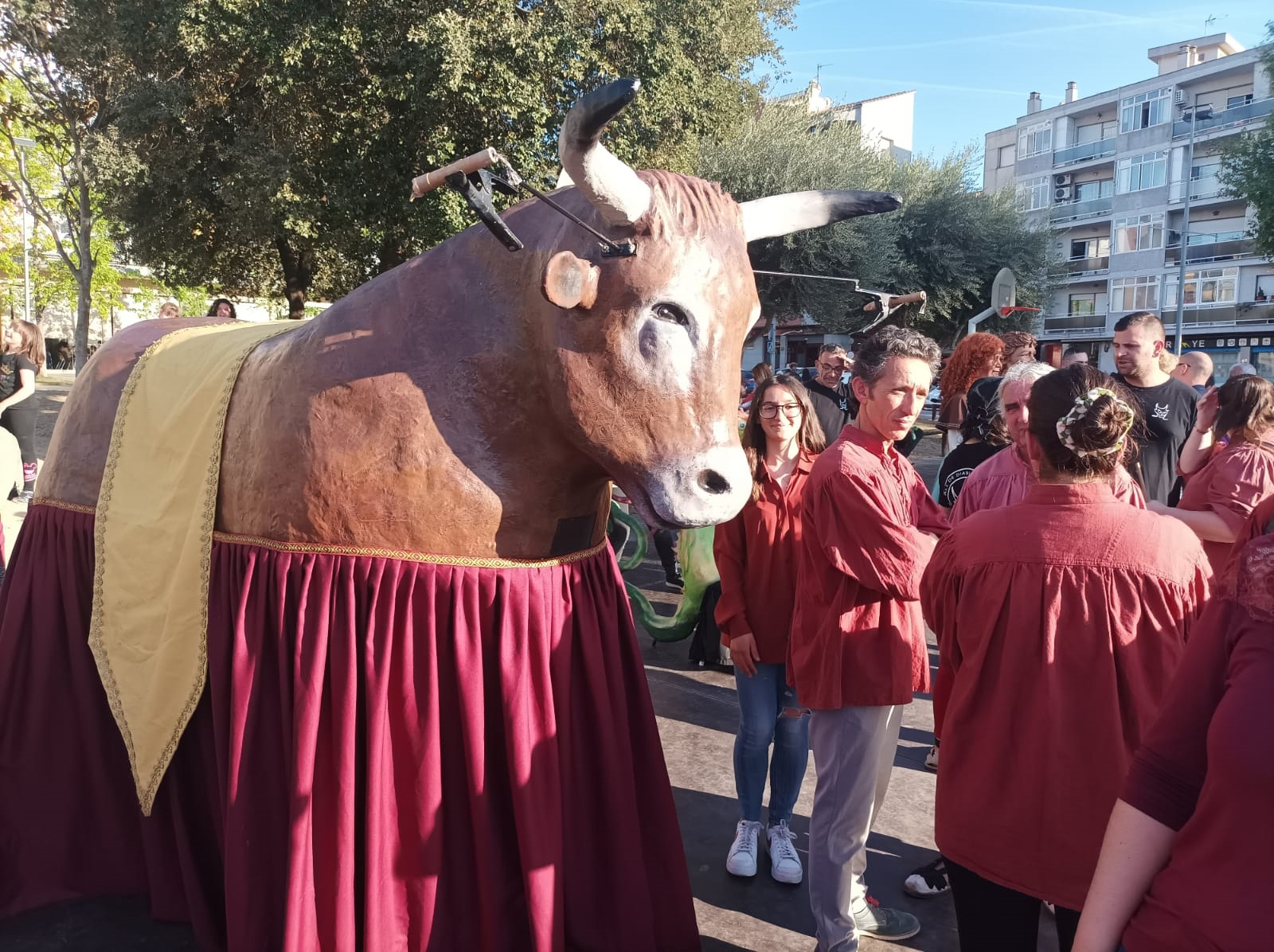 A la plaça s’hi van trobar la Jazmín, en Ramon, en Carles, la M. Rosa, l’Elisenda, en Camilo, la Michelle… Amics de la Unió de Botiguers, de la Remençada, de Palau Dalmanla, de la Colla gegantera, dels Diables...I tots van gaudir d’una ballada esplèndida que es va cloure amb una altra ballada, la del Bou de Montornès, acompanyat de diversos gegantons i del drac de la colla de Diables.