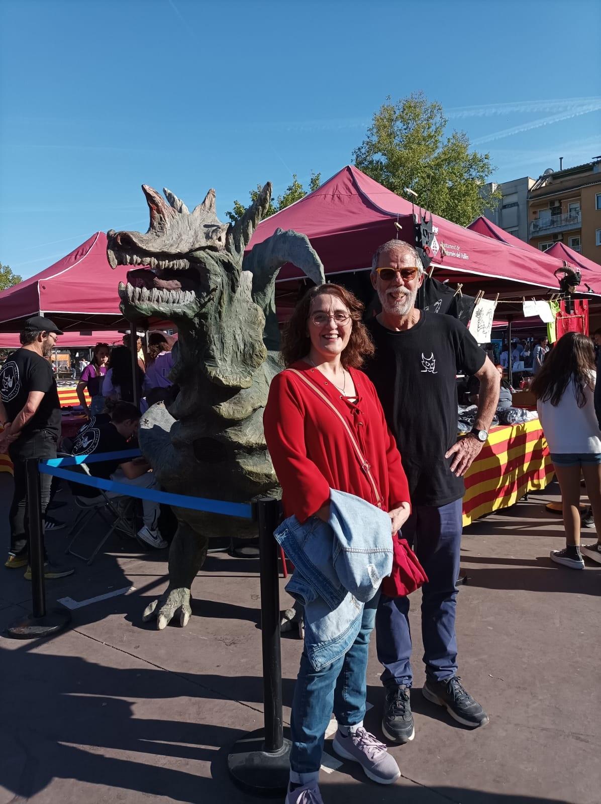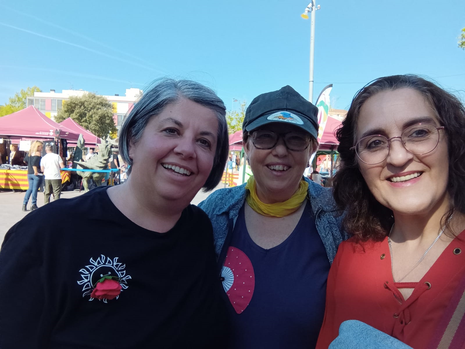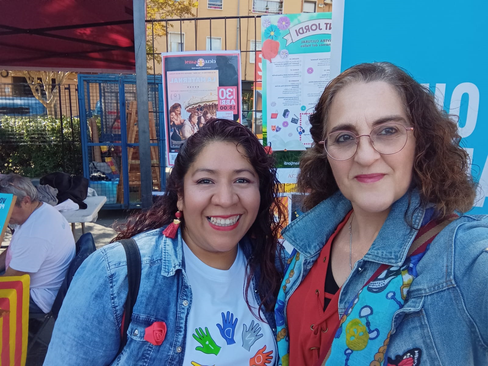Ahir en la ballada de sardanes de Sant Jordi hi va haver moltes abraçades i retrobaments. Alguns alumnes i participants en el Voluntariat per la llengua es van acostar a la plaça Pau Picasso i vam gaudir d’una magnífica tarda de música, sardanes, llibres, roses i cultura popular. A l’estand de l’Ajuntament es va instal·lar el tòtem del Voluntariat per la llengua i es van deixar tríptics informatius per donar a conèixer el Voluntariat i també per animar tothom a visitar l’exposició Quan parles fas màgia que està instal·lada des de fa una setmana a la Sala Riu Mogent del Casal de Cultura.