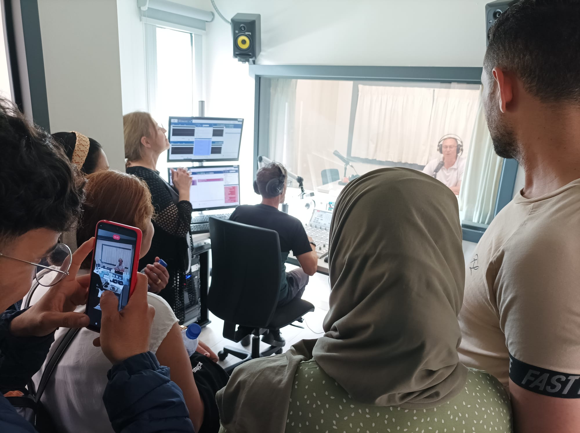 Allà els va rebre la directora de la Ràdio, Marga Gené, que els va ensenyar l’equipament i els va explicar la història d’aquest edifici, que acull el Terminus Augustalis i que des de l’any 2017 és la casa de Ràdio Montornès. Marga Gené també els va ensenyar els diferents estudis de gravació, la discoteca de discos de vinil i l’arxiu on es guarda la història de la Ràdio amb CD de música i gravacions en diferents formats de tots els programes de l’emissora des de l’inici del seu funcionament.