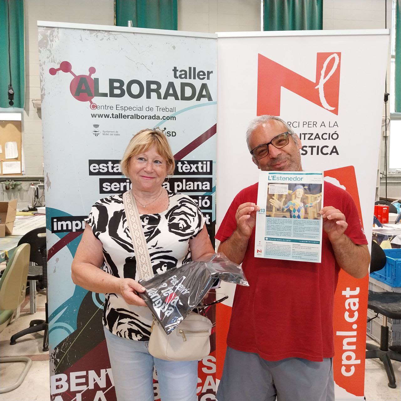 Aquest any, el CET Taller Alborada, centre que depèn de l'Institut Municipal de Serveis als Discapacitats de l'Ajuntament de Mollet del Vallès i el Servei de Català de Mollet del Vallès (CPNL) han preparat un nou premi per a la persona que guanyi el concurs de l'endevinalla de L'Estenedor: un nou model de samarreta per promoure l’ús de la llengua catalana, feta al Taller Alborada -IMSD. Gràficament es juga amb la imatge de la llengua per incloure la varietat dialectal teua, perquè tant es pot dir Fes servir la teva llengua com Fes servir la teua llengua. Parla’m en català ;-).