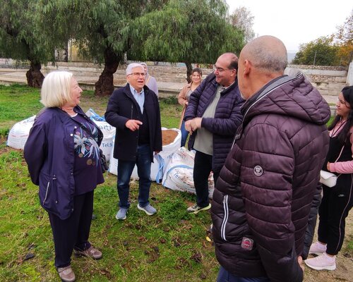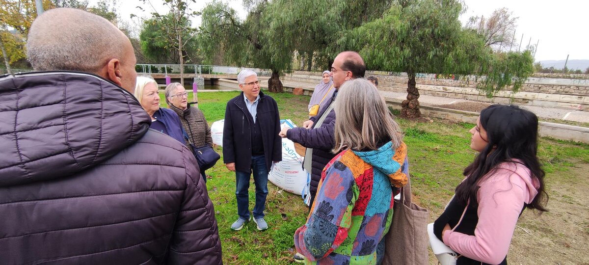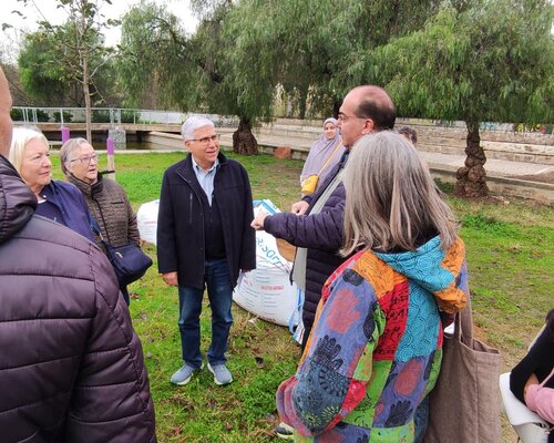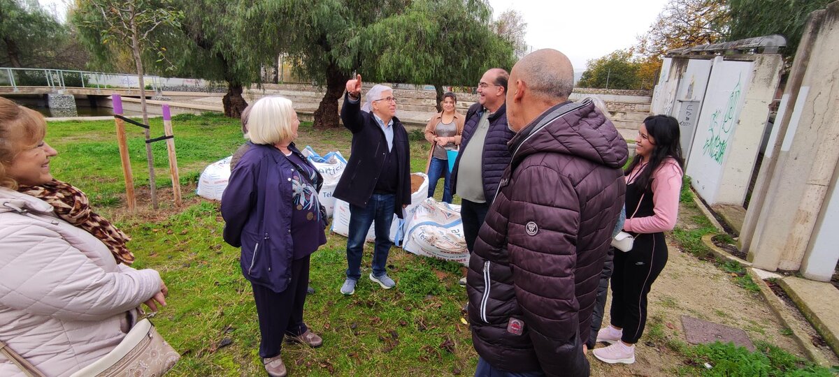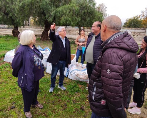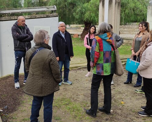 Una desena d’alumnes del curs Elemental 1 s’han trobat, a les 10 del matí, al parc de Ponent per començar la visita guiada i les explicacions de Jaume Coll sobre l’obra artística que Jordi Benito hi ha exposat permanentment. Es tracta d’una obra singular a l’aire lliure amb forta càrrega simbòlica i cultural, que en Jaume ha anat descobrint als assistents durant el recorregut.