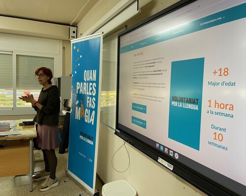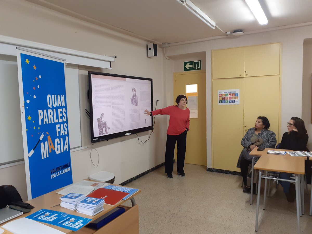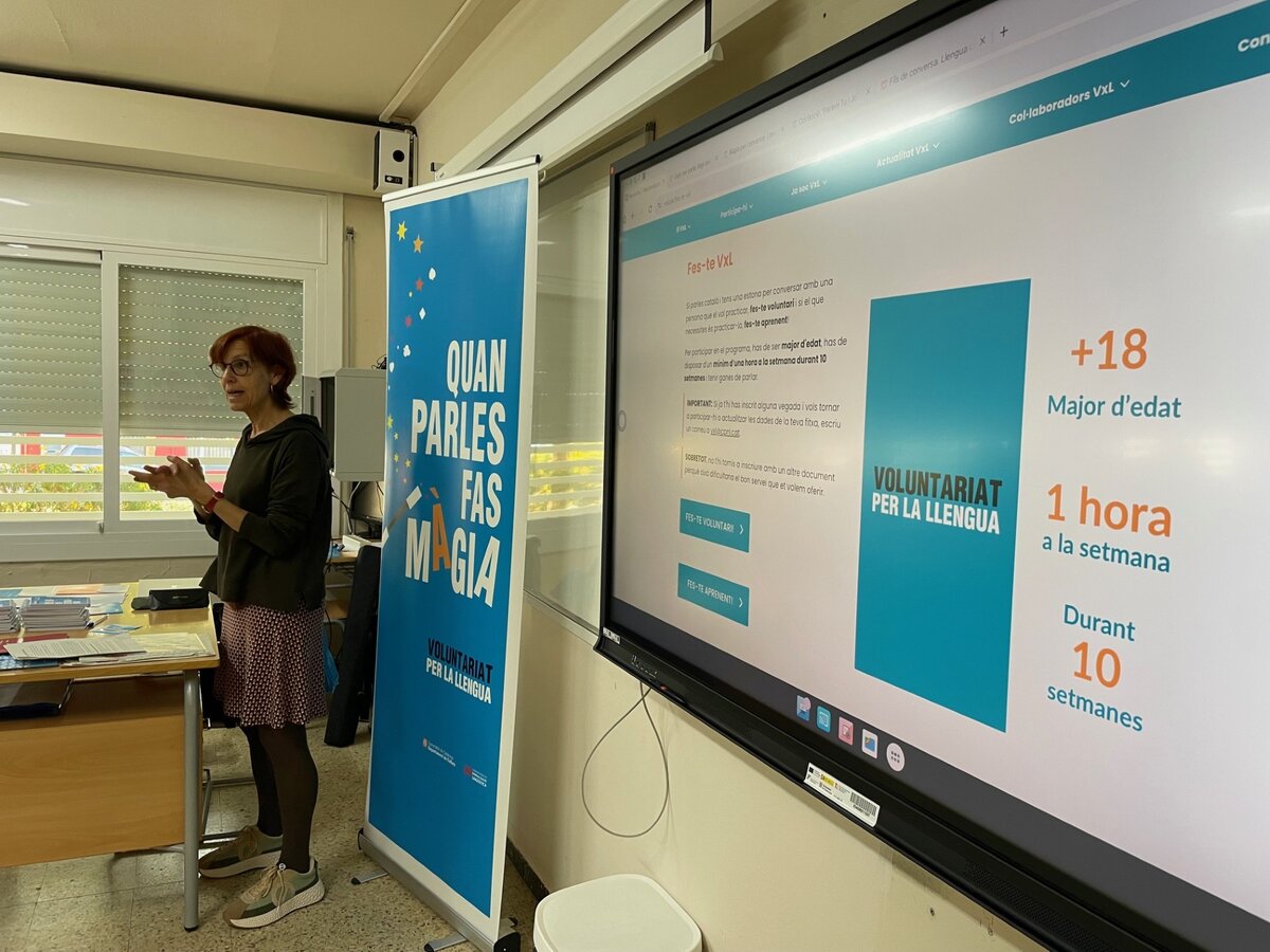 En aquesta presentació, la tècnica del Servei Comarcal de Català del Vallès Oriental i la dinamitzadora del programa a la comarca han explicat en què consisteix el Voluntariat per la llengua, com funciona, quins materials poden fer servir per enriquir les converses, què poden fer i on poden quedar per conversar...