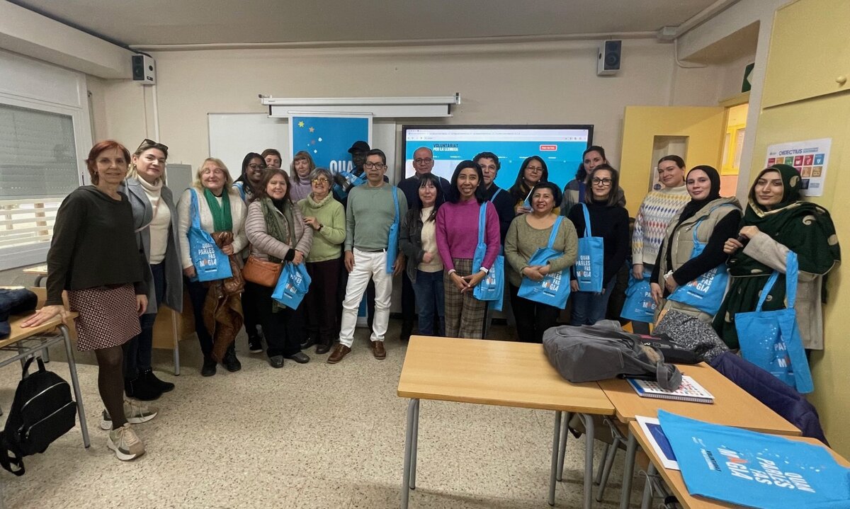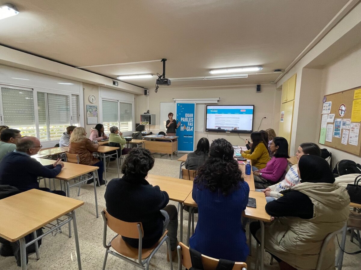 Aquest dimecres, 5 de febrer, s'ha organitzat un acte de formació i presentació de parelles lingüístiques al Centre de Formació d'Adults Bellavista, de les Franqueses del Vallès. La majoria de les parelles s'han pogut formar entre alumnes dels cursos de català, com a aprenents, i alumnes d'altres matèries (anglès i informàtica), com a voluntaris.