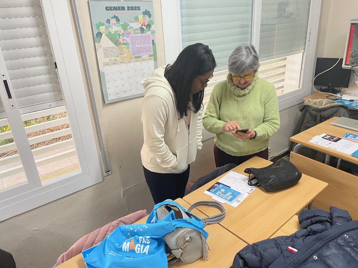 També hi ha intervingut una antiga parella de les Franqueses, formada per la Kati, una alumna del curs de català, i la Marga, una voluntària veterana i sempre ben disposada, que han animat els alumnes a participar d'aquesta experiència gratificant.