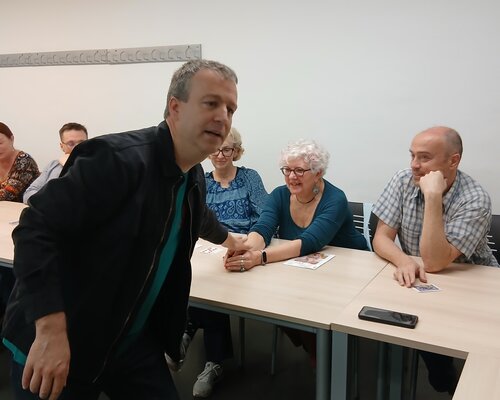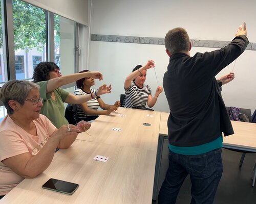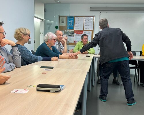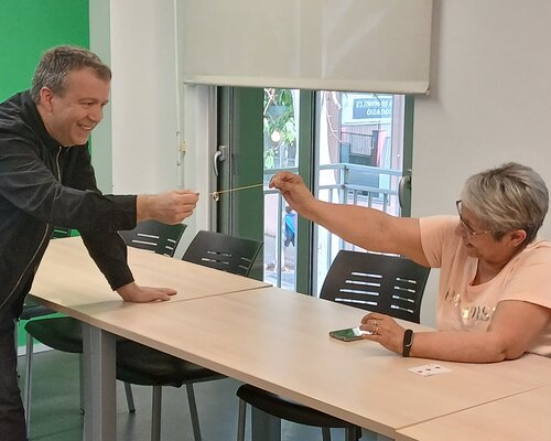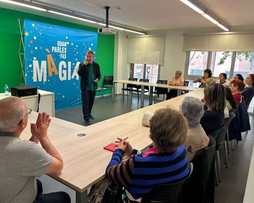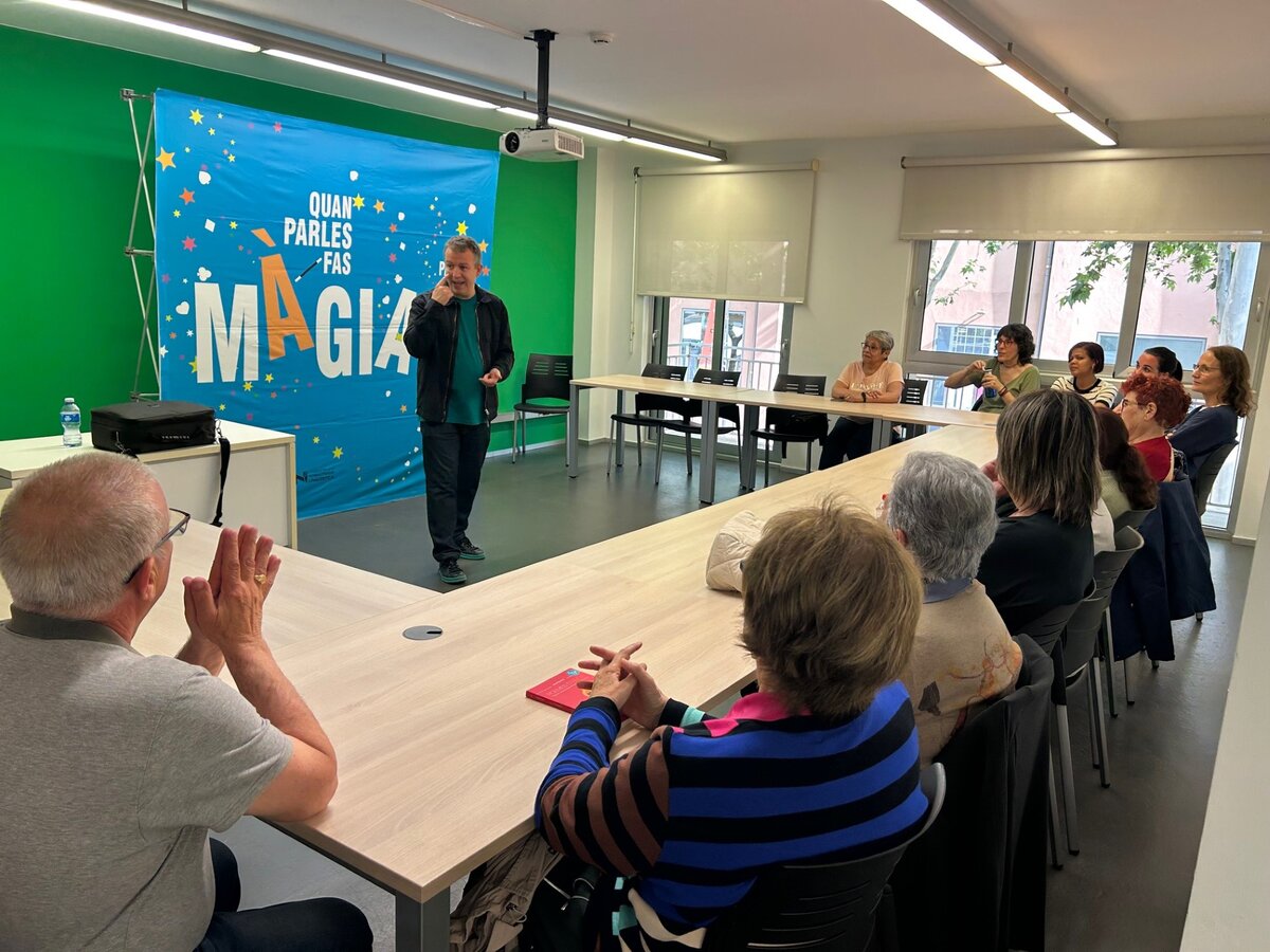 La sessió va culminar amb una actuació final d'Eduard Juanola que va deixar tothom bocabadat, i els participants van valorar molt positivament l'experiència. Tots van coincidir a destacar la il·lusió, la sorpresa i la complicitat compartida, així com la importància de poder practicar el català d'una manera amena i creativa.