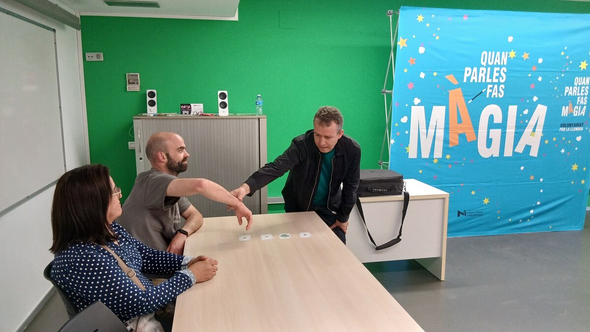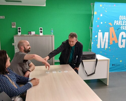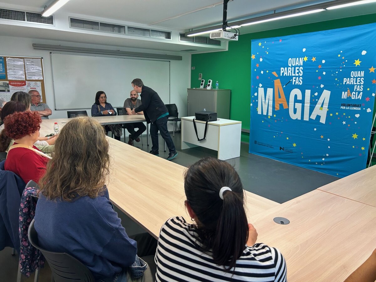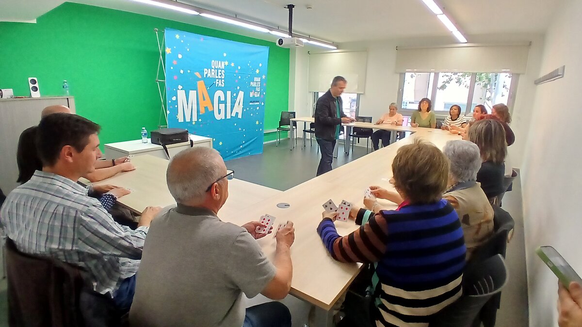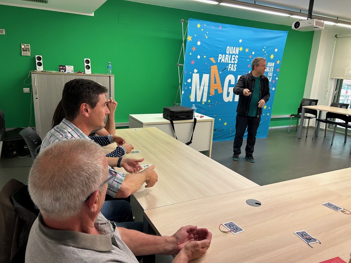El divendres 16 de maig, el Centre de Normalització Lingüística (CNL) del Vallès Oriental va acollir una activitat molt especial per als participants del programa Voluntariat per la llengua (VxL) de Granollers, Cardedeu, Llinars i Mollet. El mag Eduard Juanola va impartir dos tallers de màgia que van reunir vint-i-cinc voluntaris i aprenents amb ganes de divertir-se i, sobretot, de practicar el català. Aquests tallers s'organitzen amb el suport del Departament de Política Lingüística.