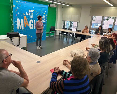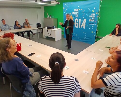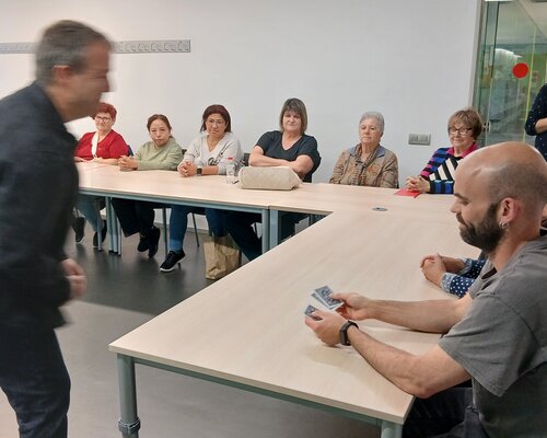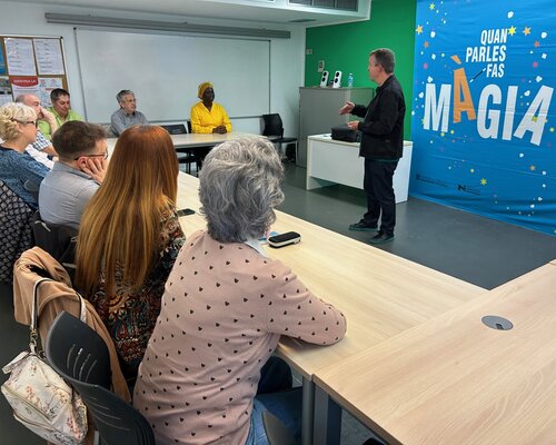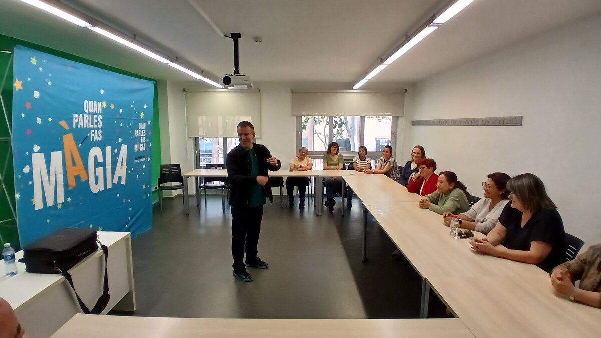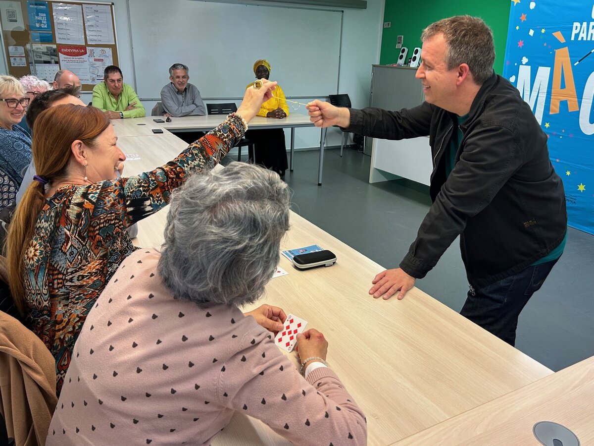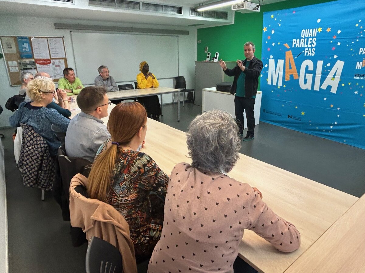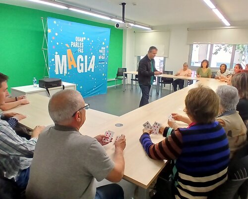 El divendres 16 de maig, el Centre de Normalització Lingüística (CNL) del Vallès Oriental va acollir una activitat molt especial per als participants del programa Voluntariat per la llengua (VxL) de Granollers, Cardedeu, Llinars i Mollet. El mag Eduard Juanola va impartir dos tallers de màgia que van reunir vint-i-cinc voluntaris i aprenents amb ganes de divertir-se i, sobretot, de practicar el català. Aquests tallers s'organitzen amb el suport del Departament de Política Lingüística.