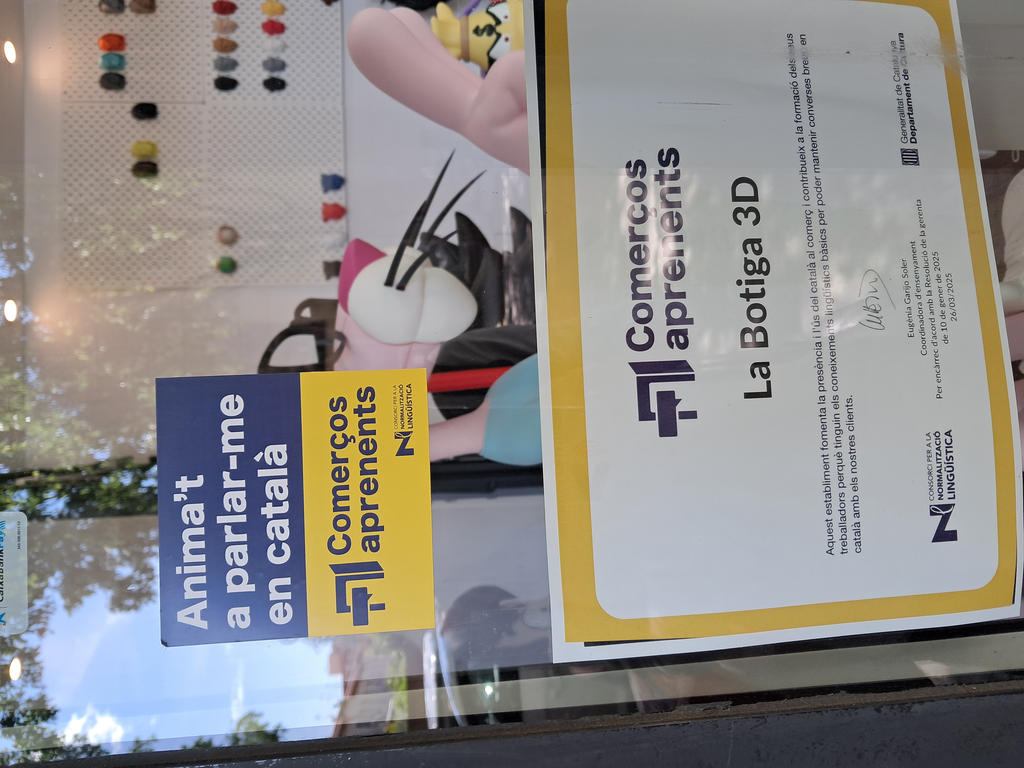 Cada dimarts, a les 16 h, una la tècnica del Servei de Català de Mollet va a La Botiga 3D, del carrer Enric Morera, 39 per fer una sessió d'uns quinze minuts de durada amb el Martín i en Gastón. Aquesta activitat forma part del projecte Comerços aprenents.