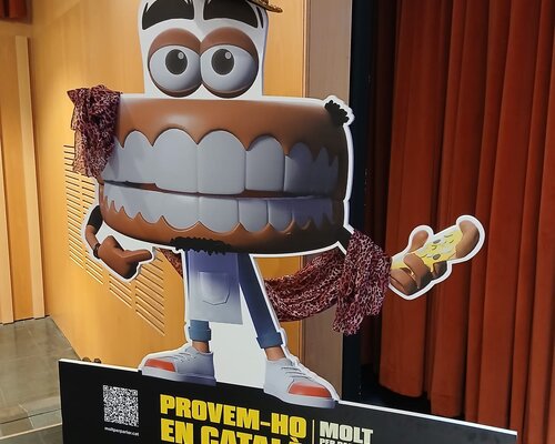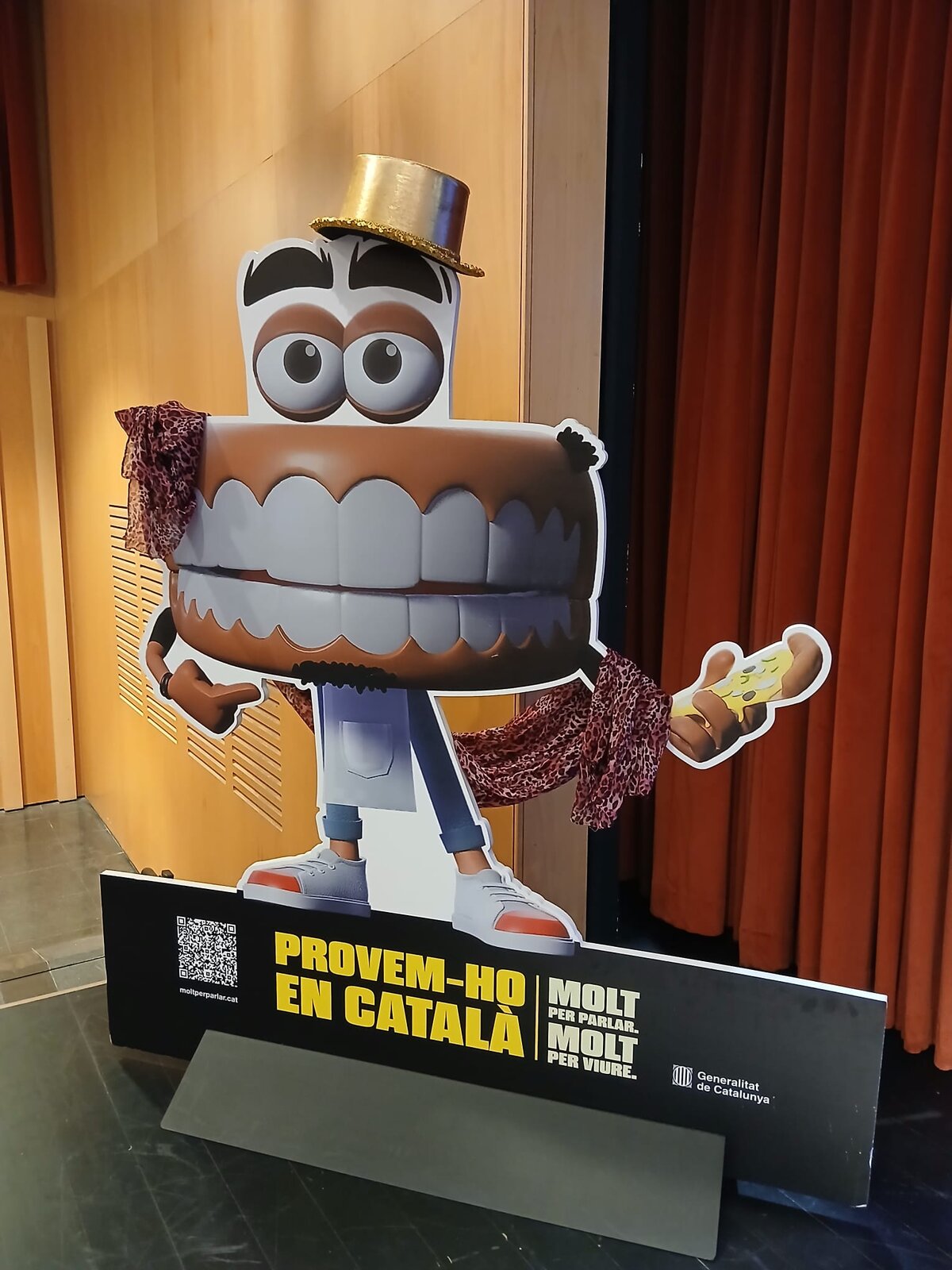 La Queta, com l’any passat, va presidir la festa des de l’escenari per reforçar la presència i l’ús del català. Durant tot aquest curs, i per tal de fer visible la campanya Provem-ho en català, des de l’octubre de 2024 la Queta ha anat fent ruta per diversos equipaments i des d’allà ha fet un programa de ràdio. El teatre ha estat el darrer equipament visitat aquest any. Ja fa uns dies que va viatjar des del Casal de Cultura fins al Teatre Margarida Xirgu, on es va instal·lar primer al vestíbul i el dia del festival a l'escenari. Durant el festival, tal com es va fer l’any passat, es va sentir sovint la cançó de la Queta, que va ser la sintonia de la festa i que el públic es va animar a cantar al final de l’acte.