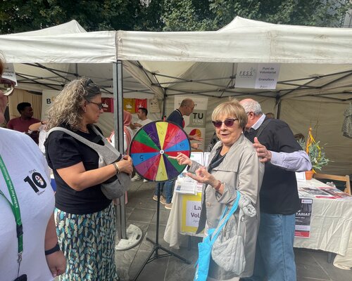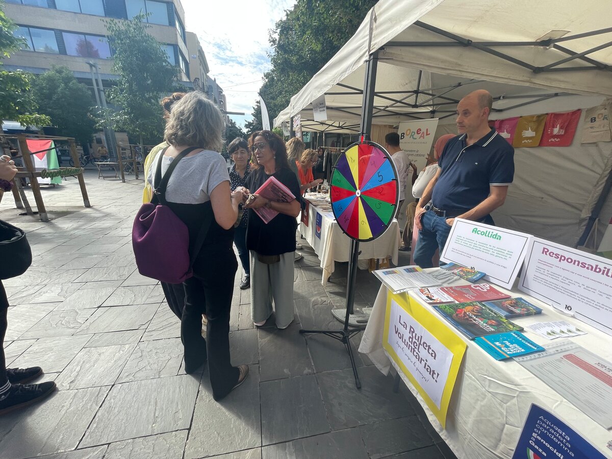 Durant el matí, a la plaça de Lluís Perpinyà, l'espai de la Taula d'Entitats del Voluntariat de Granollers va rebre la visita de força parelles lingüístiques, alumnes i població en general que van aprofitar per compartir l'ambient festiu de la fira. A més, moltes persones van participar en la ruleta de preguntes. I els encertants es van endur un petit obsequi.