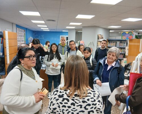 En arribar la segona hora de classe el grup es va desplaçar des de l’aula de català fins a la Biblioteca de Montornès on els esperava la Charo, una de les auxiliars bibliotecàries que hi treballa. La Charo va acompanyar-los pels diferents racons de l’equipament: sala infantil, sala de préstec, sala per premsa i revistes, espai de pel·lícules i CD, espai d’estudi… i els va anar explicant el contingut de les diverses prestatgeries alhora que els animava a descobrir les activitats gratuïtes que s’hi fan cada mes.