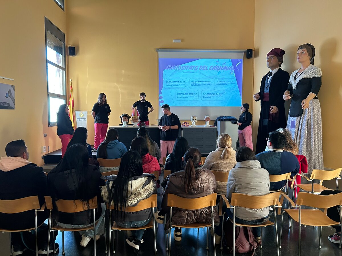 Els Engrescats, l'entitat que dinamitza actes dins la programació del Carnaval local, van mostrar als alumnes la indumentària tradicional i els elements festius que es despleguen cada any durant aquestes dates especials.