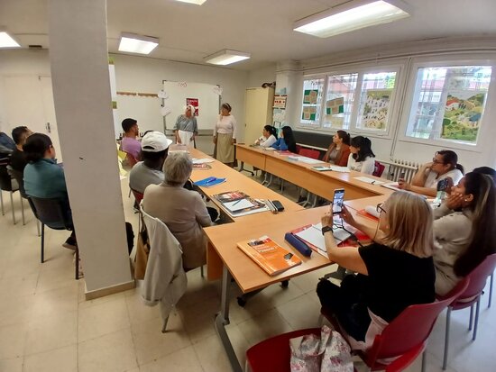 El grup d’alumnes del Bàsic 3 surt de l’aula per practicar català als establiments adherits al Voluntariat per la llengua