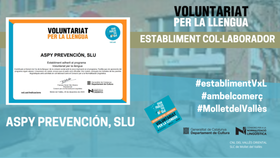 ASPY Prevención Mollet s'afegeix a la xarxa d'establiment adherits al Voluntariat per la llengua