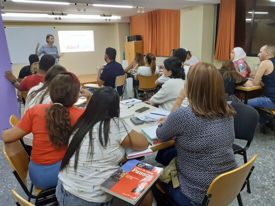 La Carme Ferrer dona la benvinguda a la població als alumnes del curs Bàsic 1