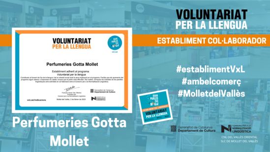 Les dues Perfumeries Gotta de Mollet (Mercat Municipal, plaça de la Llibertat, 5 i carrer de Berenguer III, 30) s'han afegit a la xarxa d'establiments col·laboradors amb el Voluntariat per la llengua.