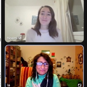 La Mireia, voluntària que viu a Alemanya. La Noemí, aprenenta nascuda a Ourense, viu a Barcelona. Totes dues comparteixen converses i experiències gràcies al VxL virtual.